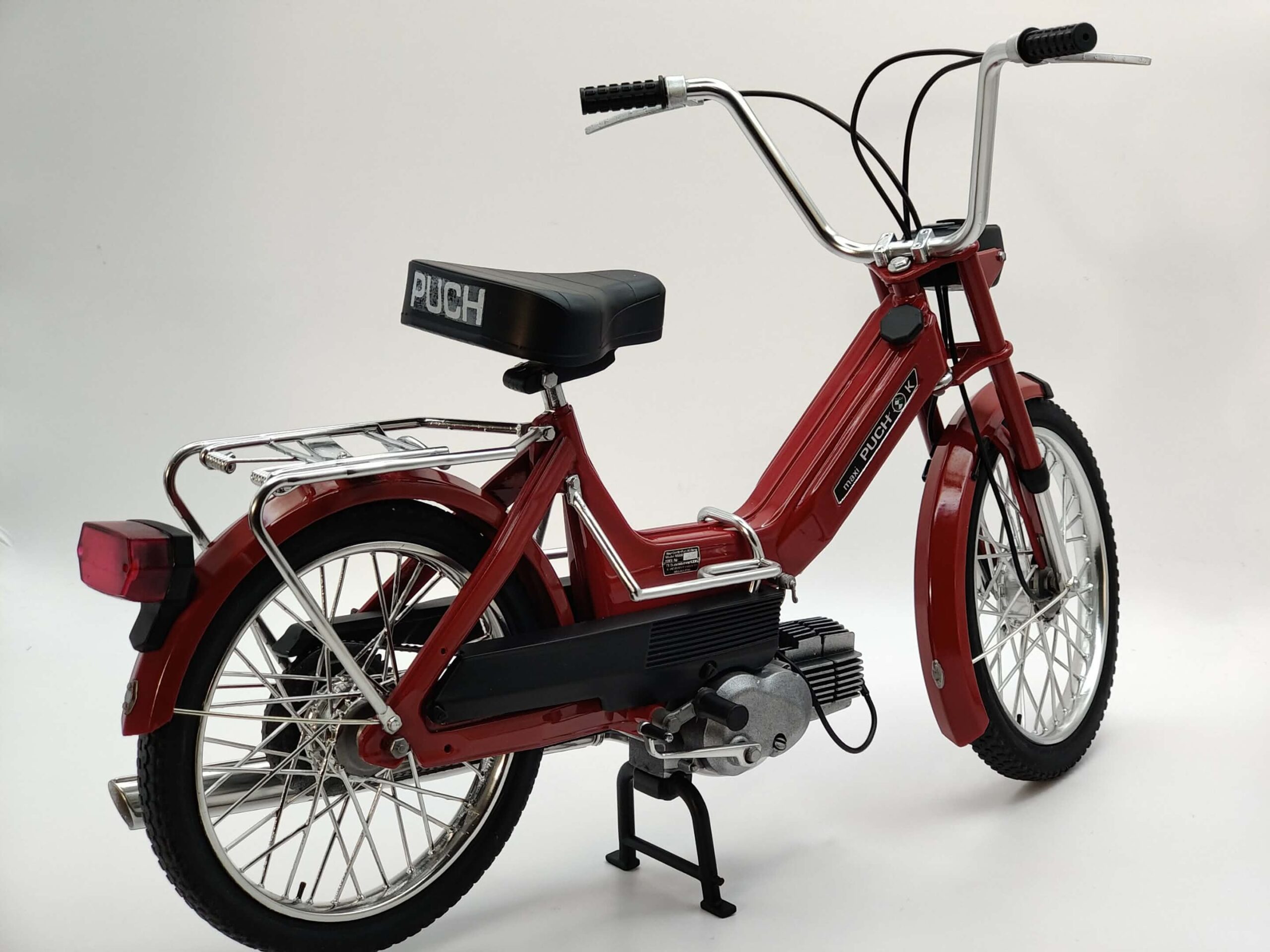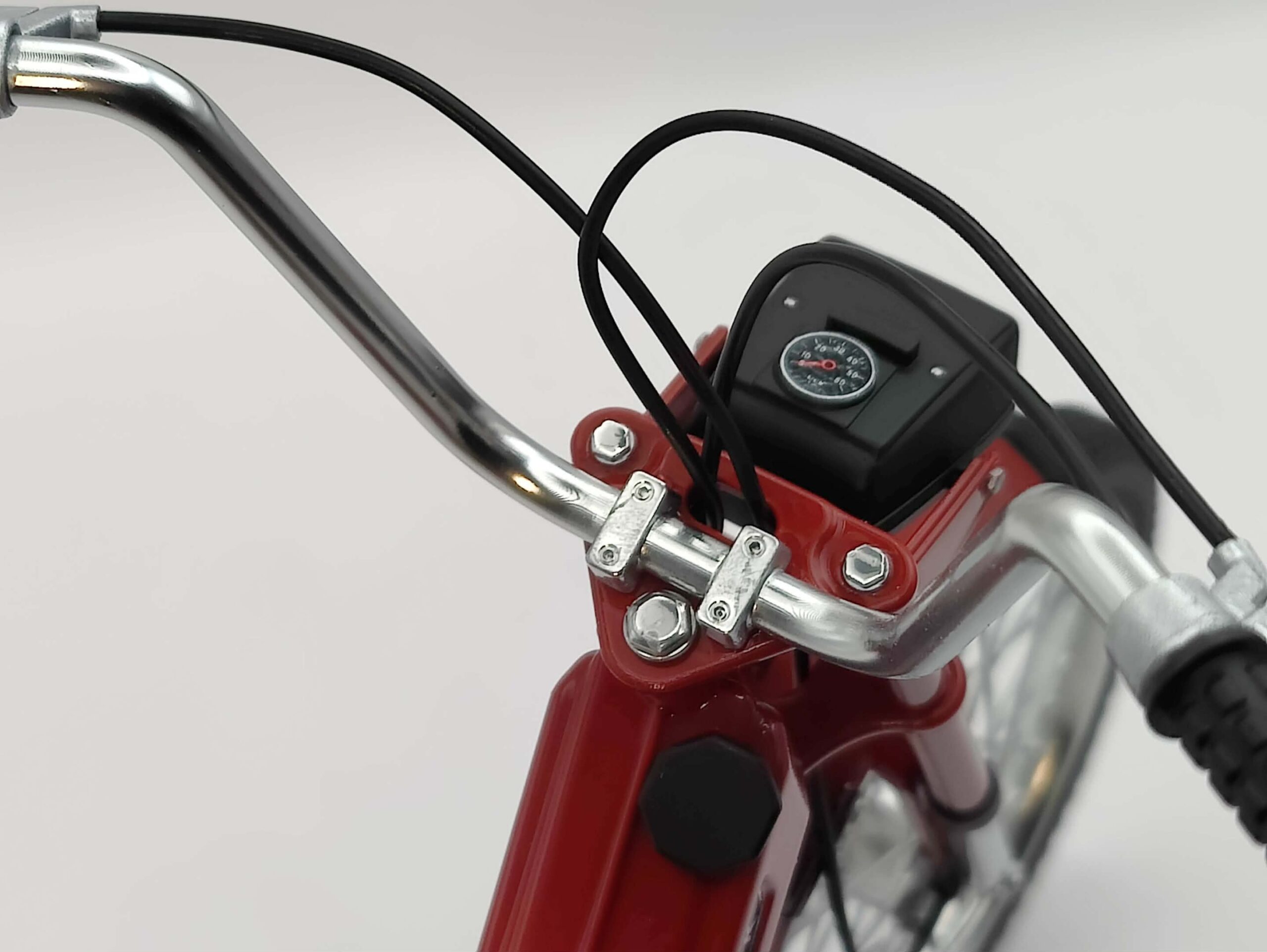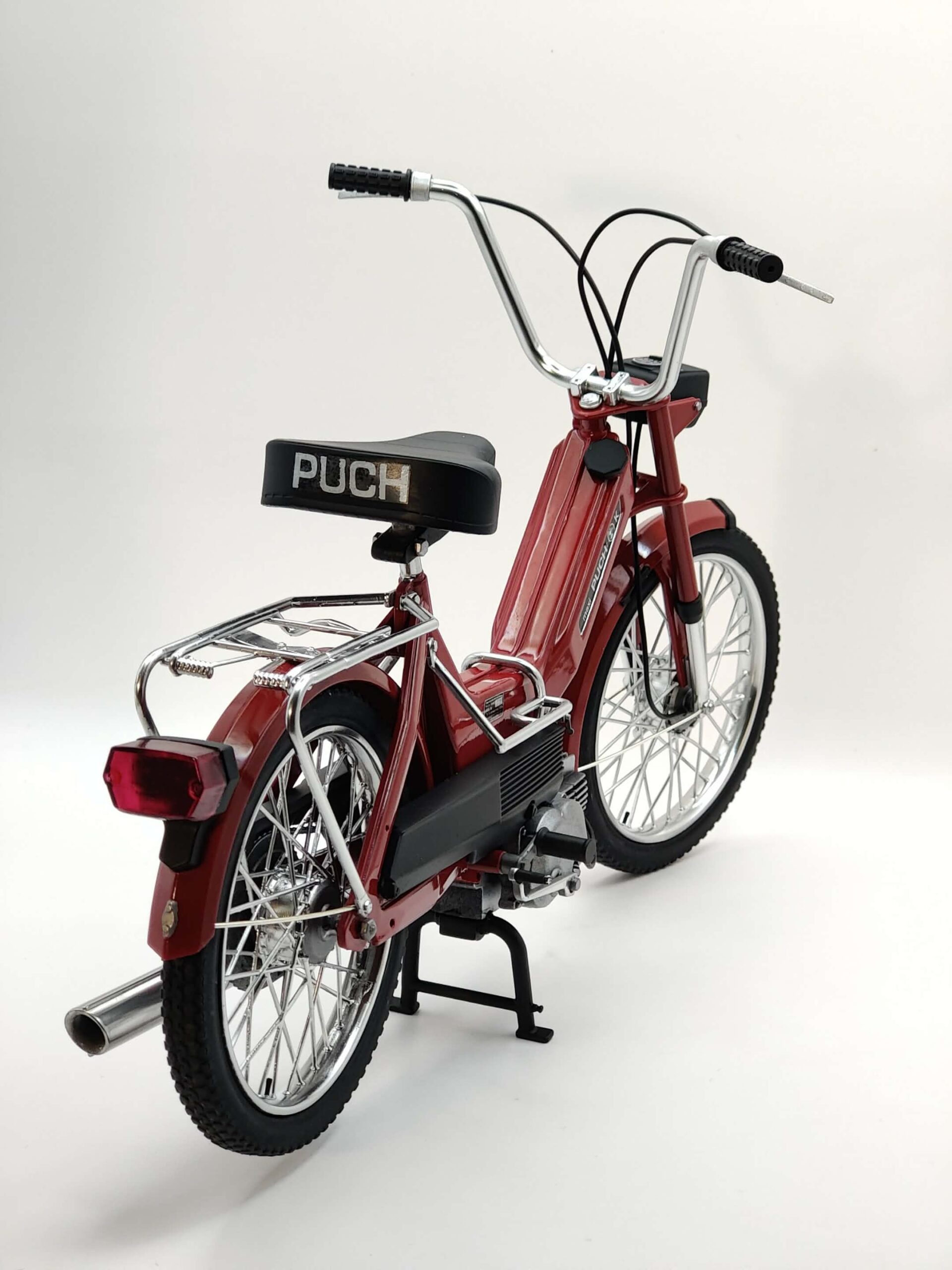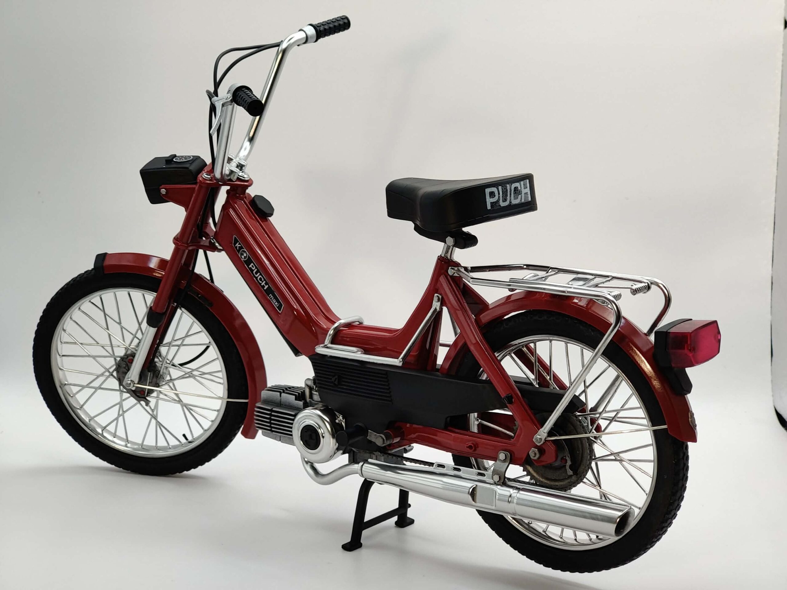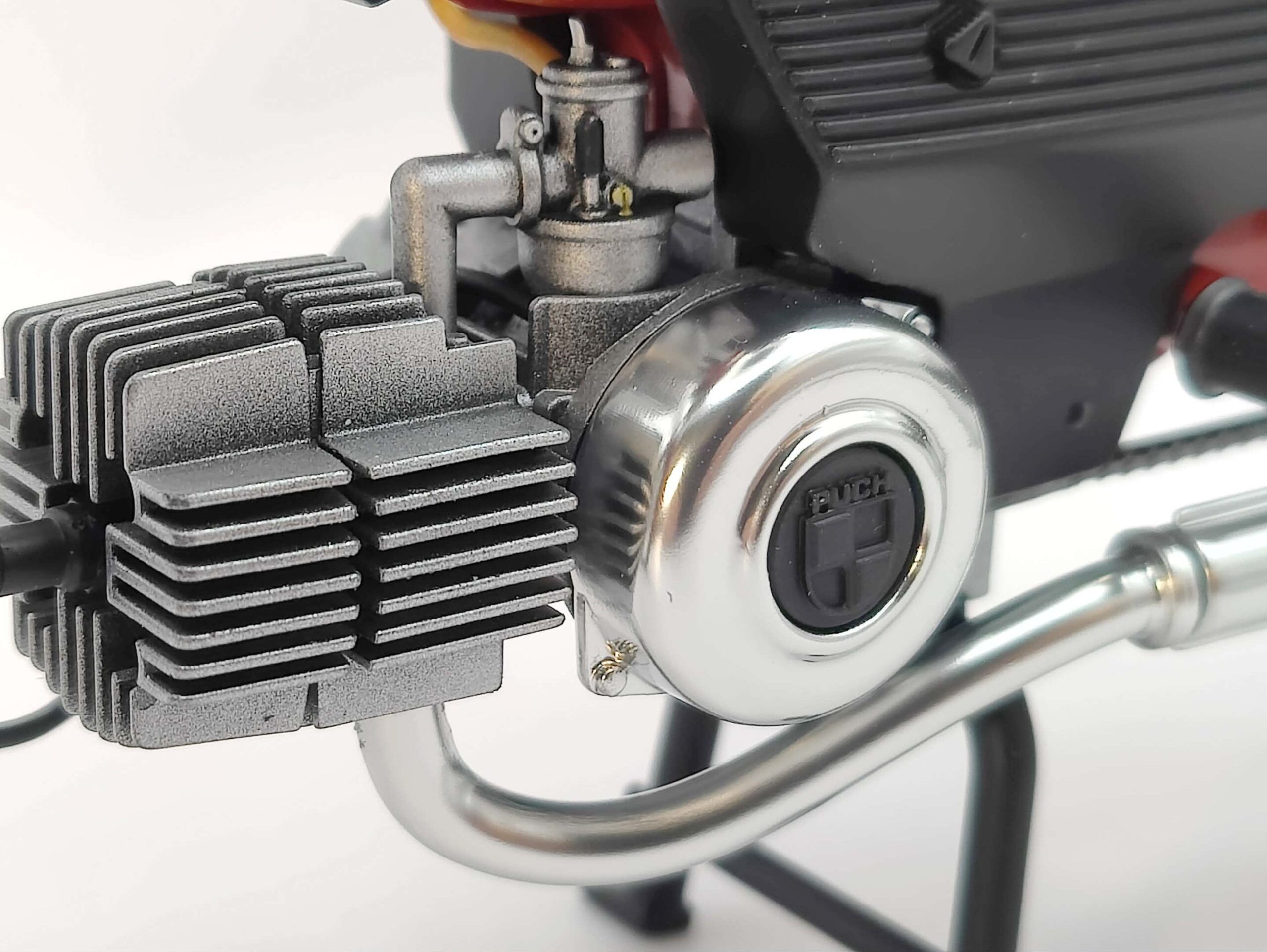 Med en længde på ca. 31 cm og en højde på ca. 19 cm giver Maxi K model i skala 1/6 mulighed for at gengive detaljer, som ellers let forsvinder i mindre skalaer. Logoer, tekst på typepladen, tal på speedometeret samt skruer, fjedre og andre små komponenter fremstår tydeligt og bidrager til et realistisk og gennemført udtryk.