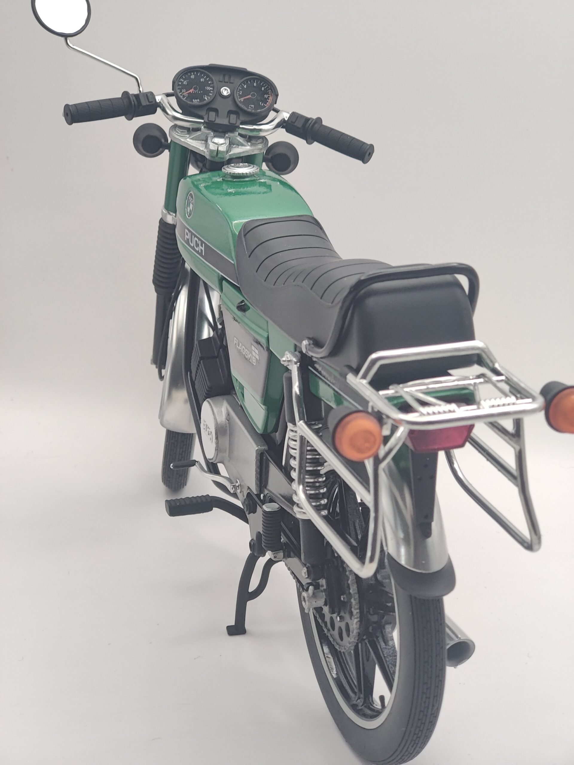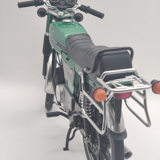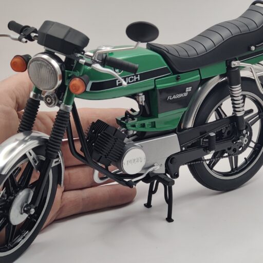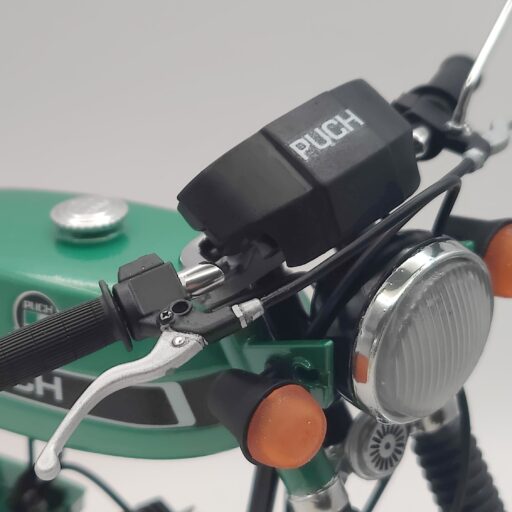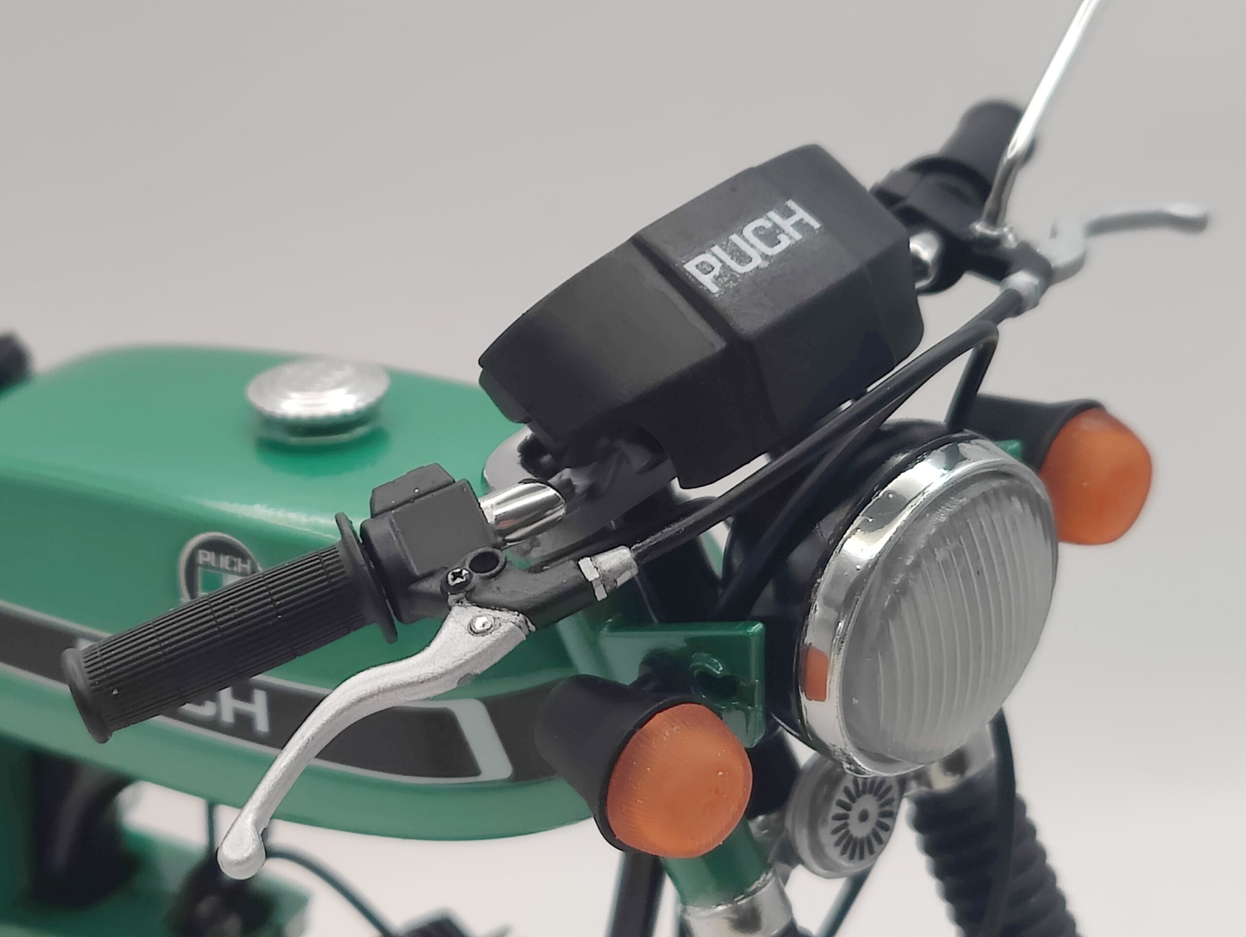 Modellen er lakeret med en stærk klarlak. Krom-delene kan ikke lakeres og tåler ikke berøring. Derfor bør modellen opbevares støvfri. Her kan man med fordel købe en display boks i passende størrelse. Det anbefales at der minimum er 5 cm fri til modellen på alle mål (L35xB17xH24 cm)