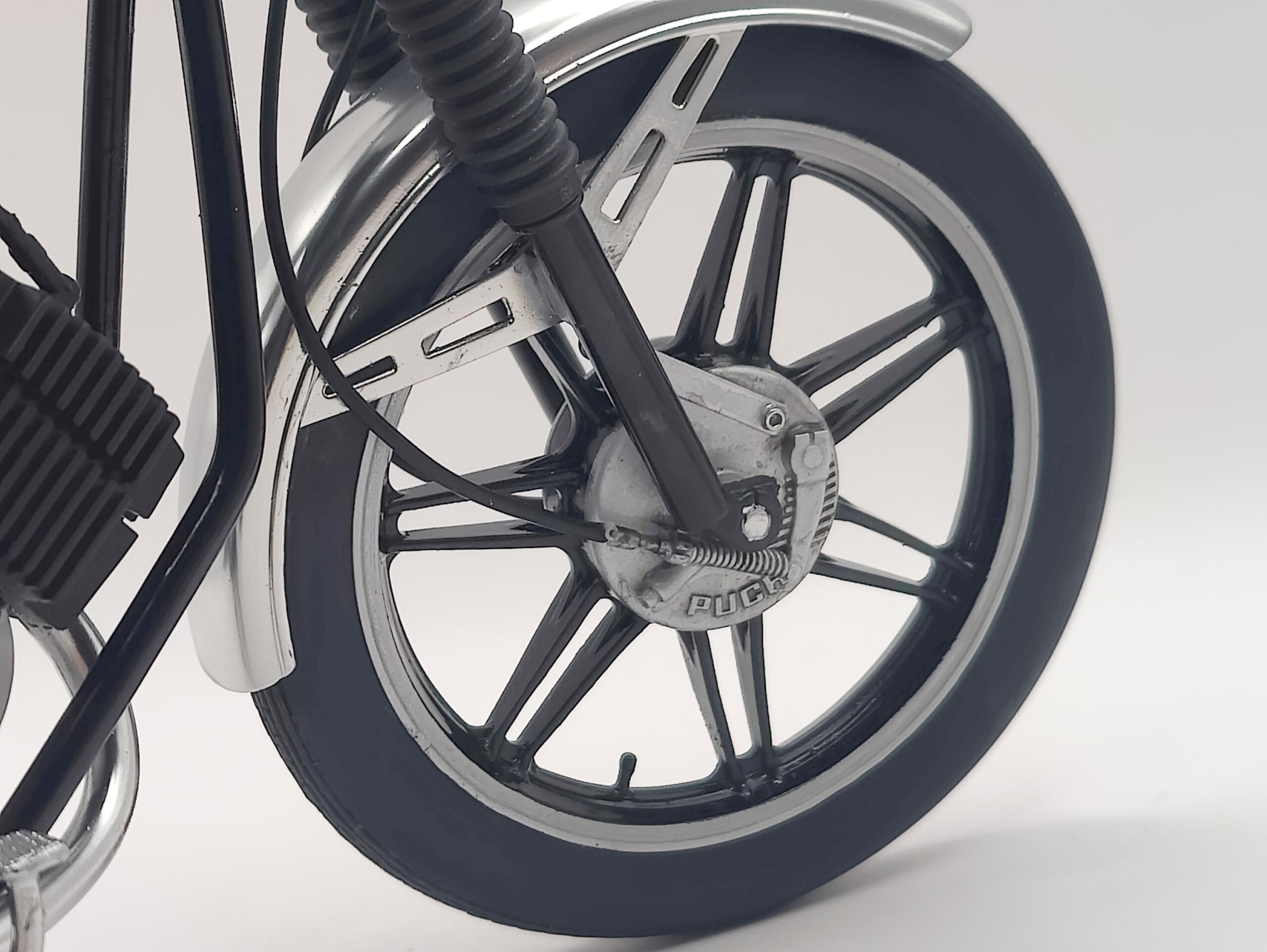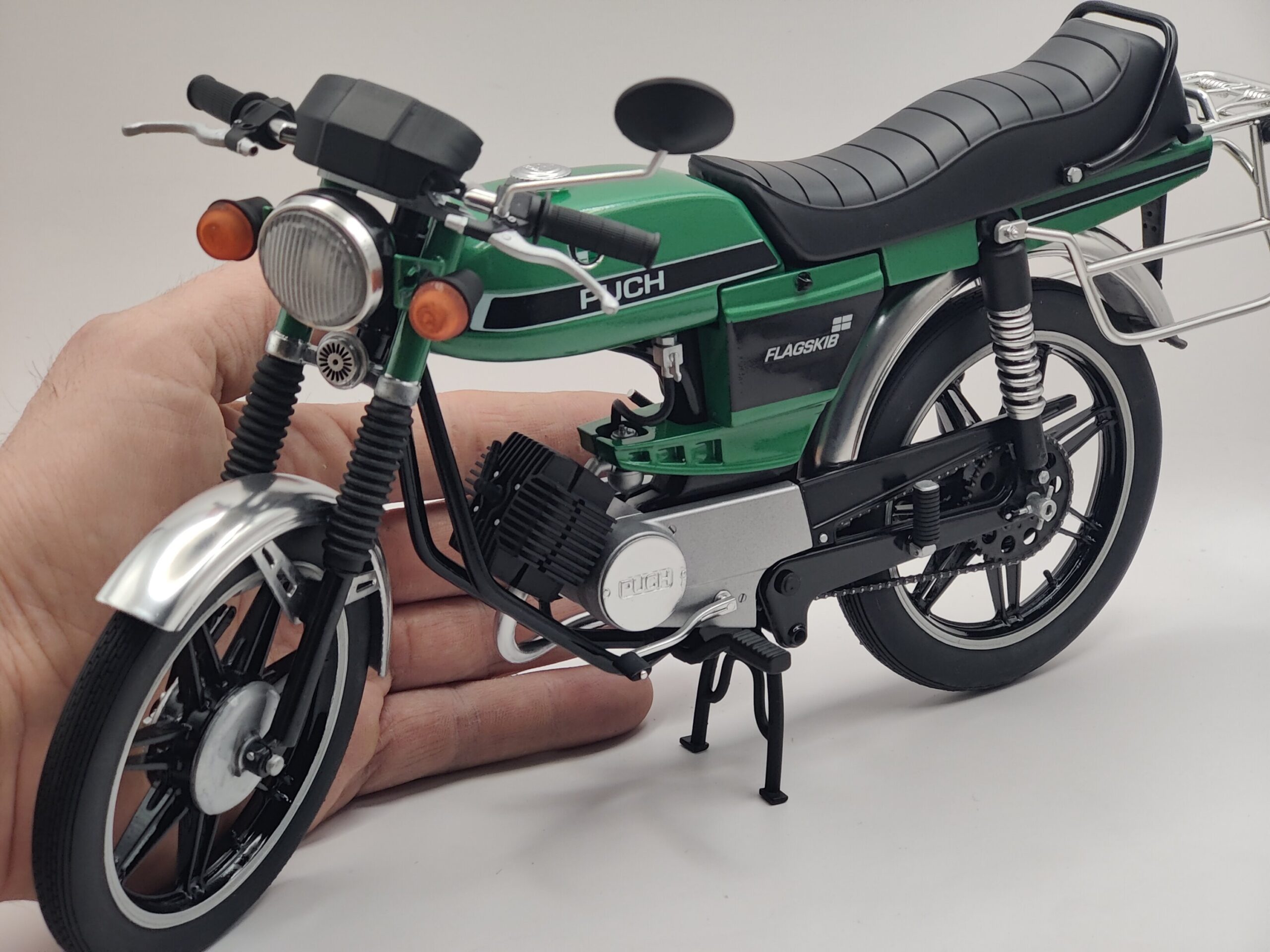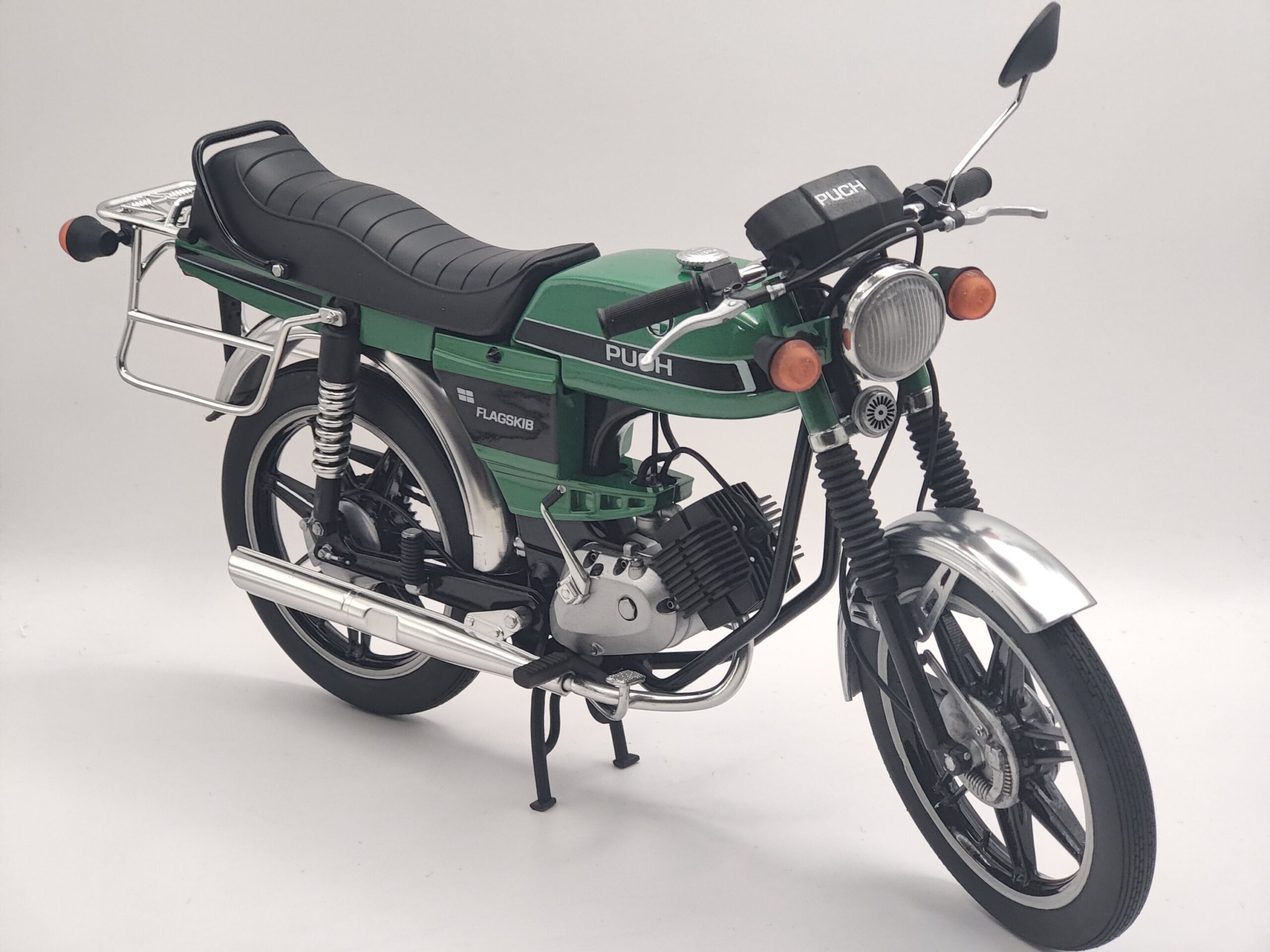 Modellen er lakeret med en stærk klarlak. Krom-delene kan ikke lakeres og tåler ikke berøring. Derfor bør modellen opbevares støvfri. Her kan man med fordel købe en display boks i passende størrelse. Det anbefales at der minimum er 5 cm fri til modellen på alle mål (L35xB17xH24 cm)