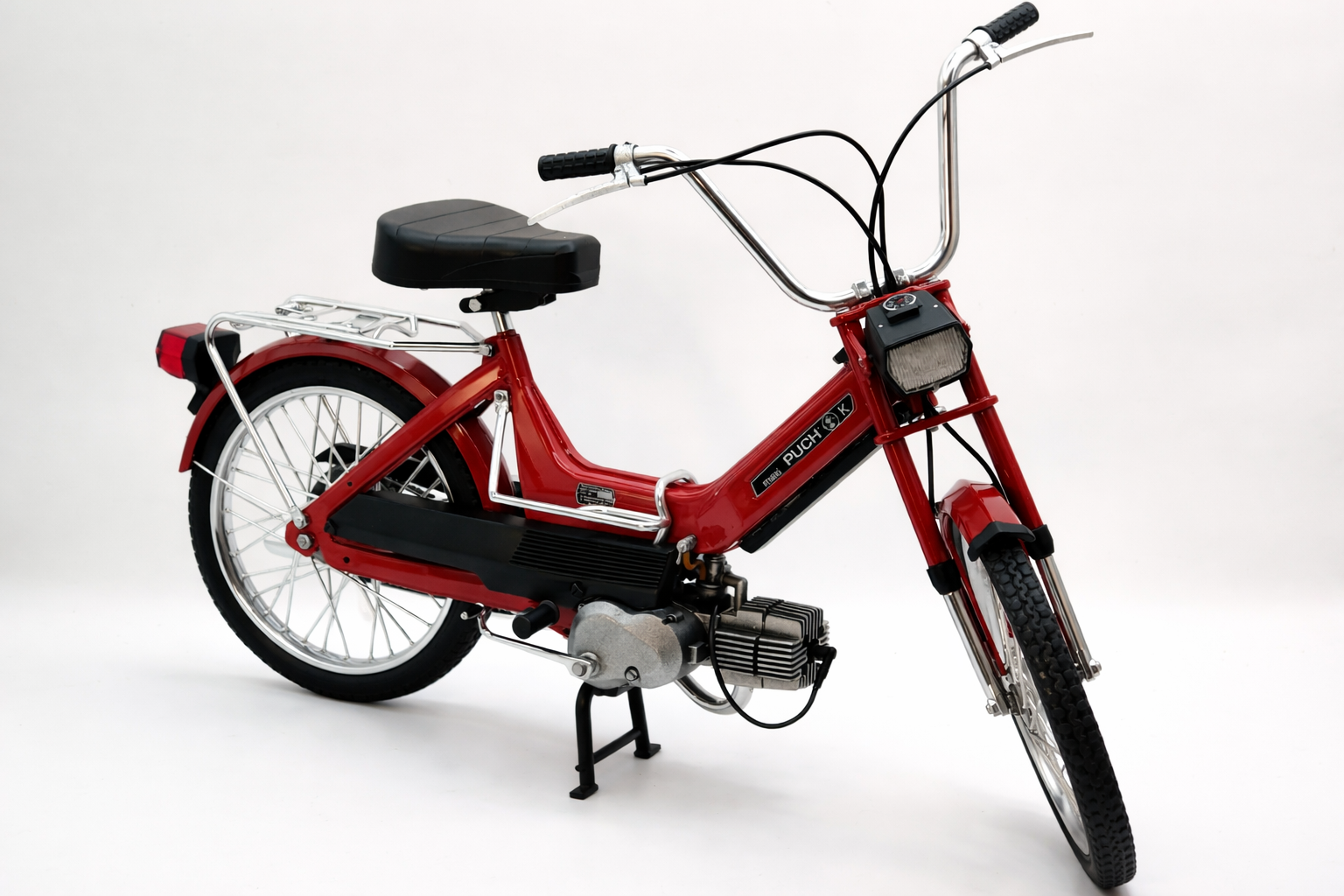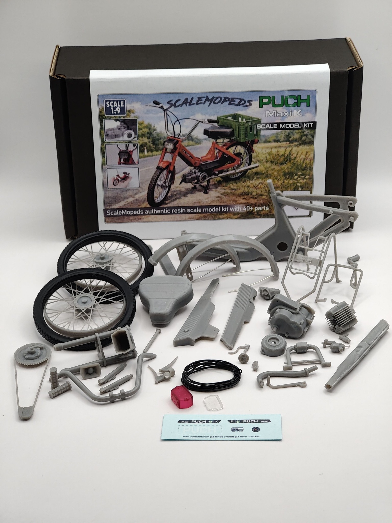 Byggesættet af Puch Maxi K er produceret med moderne fremstillingsmetoder, som sikrer høj præcision og god pasform mellem delene. Resultatet er en model, der fremstår skarp, realistisk og velegnet til udstilling.