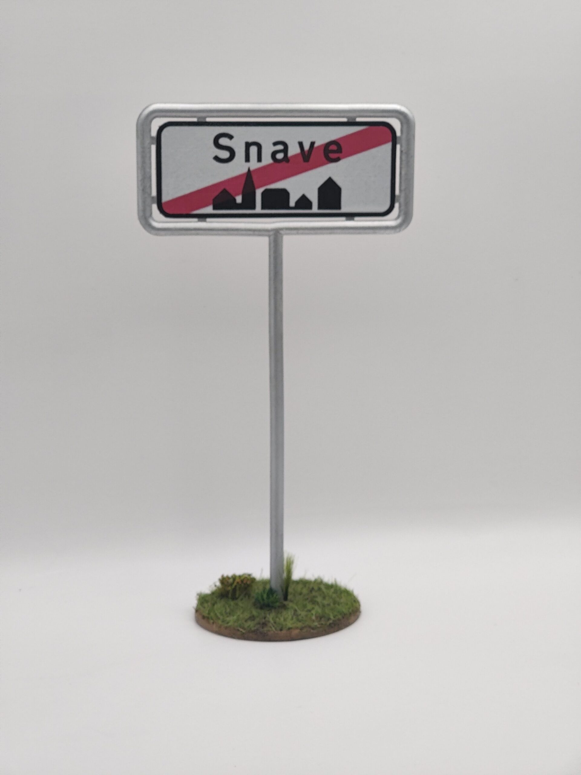 Velegnet til diorama, dukkehuse og som pynt. Leveres som vist på billederne – malet og med græsunderlag. Skiltet er lavet i skala 1/12, så det passer til knallertmodellerne 😎
